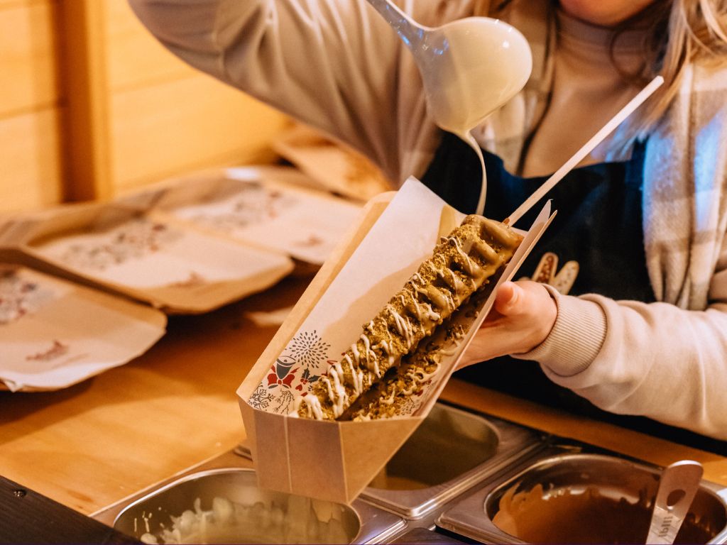 🧇 Waffle Wands – waffles done your way. These delicious wands are convinently made for walking round a trail with, and you can choose your toppings such as Belgian Chocolate, white chocolate, Biscoff sauce, crushed Oreos, smarties, sprinkles, fudge and raspberry crumb to name a few.